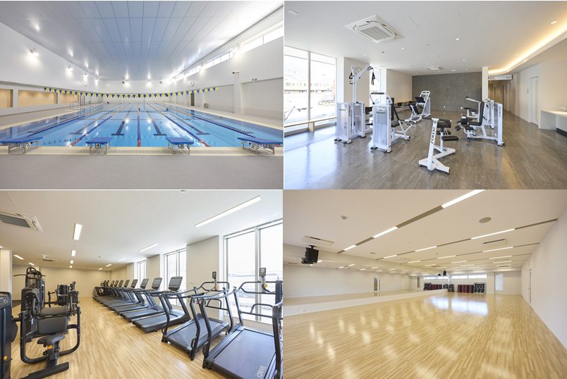 施設内容:プール(25m×6コース)、トレーニングジム、スタジオ、コンディショニングサーキット