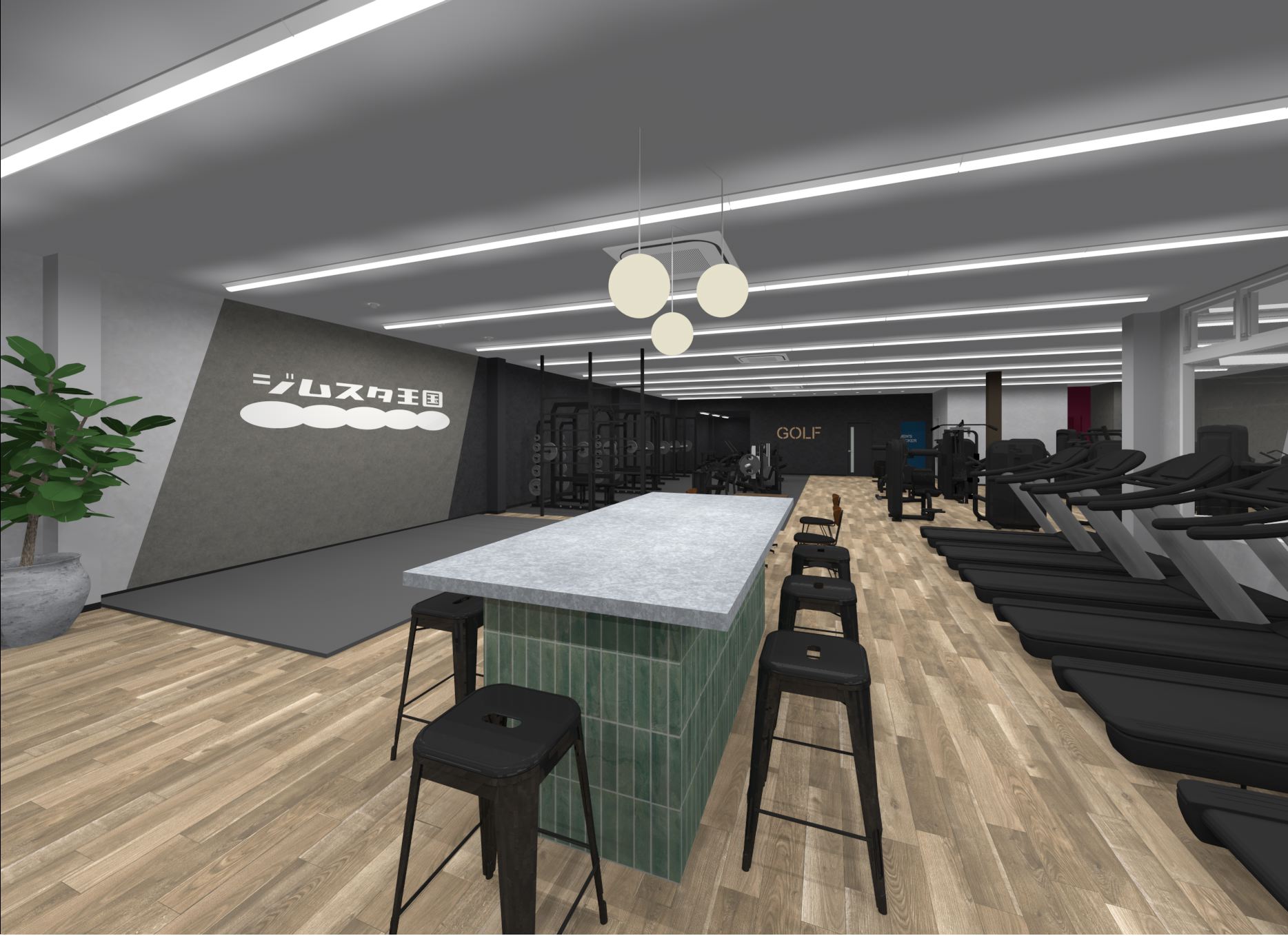 設備:ジム・サウナ(男性専用)・シミュレーションゴルフ・更衣室・ワーキングスペース