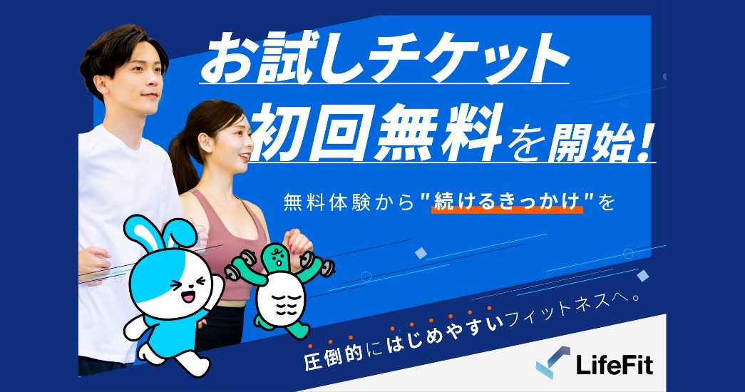 また「お試しチケット」の初回無料特典は、LifeFitを初めて利用する人が対象で、LifeFit店舗を過去に利用・入会したことがない人が対象者となる。一部店舗を除く全国のLifeFitで利用可能であり、詳細はアプリ内で確認できる。