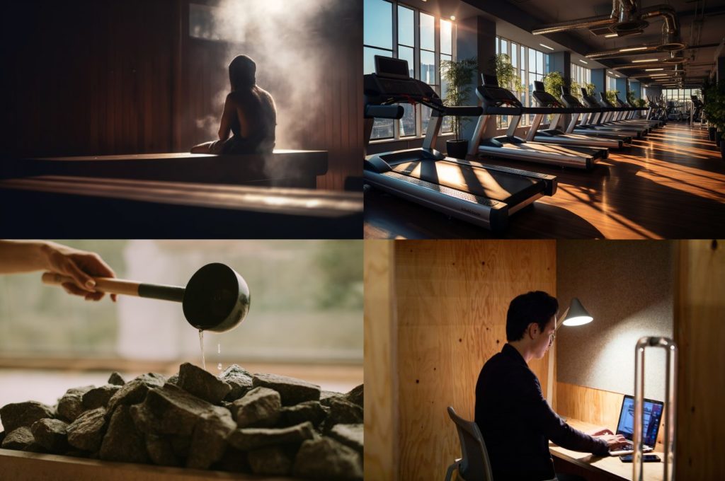 「PARADISE 大手町店」は、スパ・ジム・ワーキングスペースの3エリアを備えた複合型施設で、スパエリアにはサウナを完備、トレーニング用の本格的なマシンを導入したジムエリアと、仕事に集中できるワーキングスペースが併設される。
