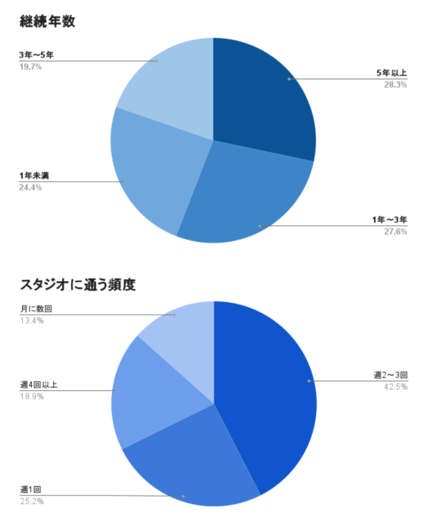 調査の結果、Surf Fit会員の75.6%が1年以上継続して利用しており、継続の理由は身体的な実感以上に「インストラクターの質・接客」が48.0%で最多となった。なお「身体的な変化の実感」と答えた割合は22.8%で、「非日常のリフレッシュ」は22.0%となった。また、利用頻度では「週2回以上」が61.4%となり、継続的な利用傾向が確認された。