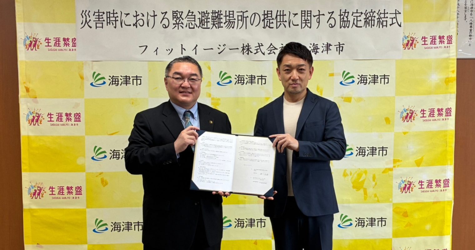 フィットイージー株式会社(本社:岐阜県岐阜市、代表:國江 仙嗣)は、2026年3月26日に岐阜県海津市と「災害時における緊急避難場所の提供に関する協定」を締結した。「FIT-EASY海津店」を、地震や大規模火災などの災害発生時に地域住民の一時避難場所として提供する。