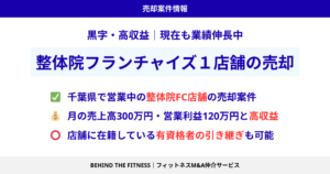 【受付終了】業績伸長中・月利益100万円超の整体院フランチャイズ店舗の売却【黒字・高収益】